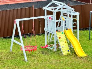 * Большая детская площадка и батут прямо на участке — развлечение для детей круглый год.