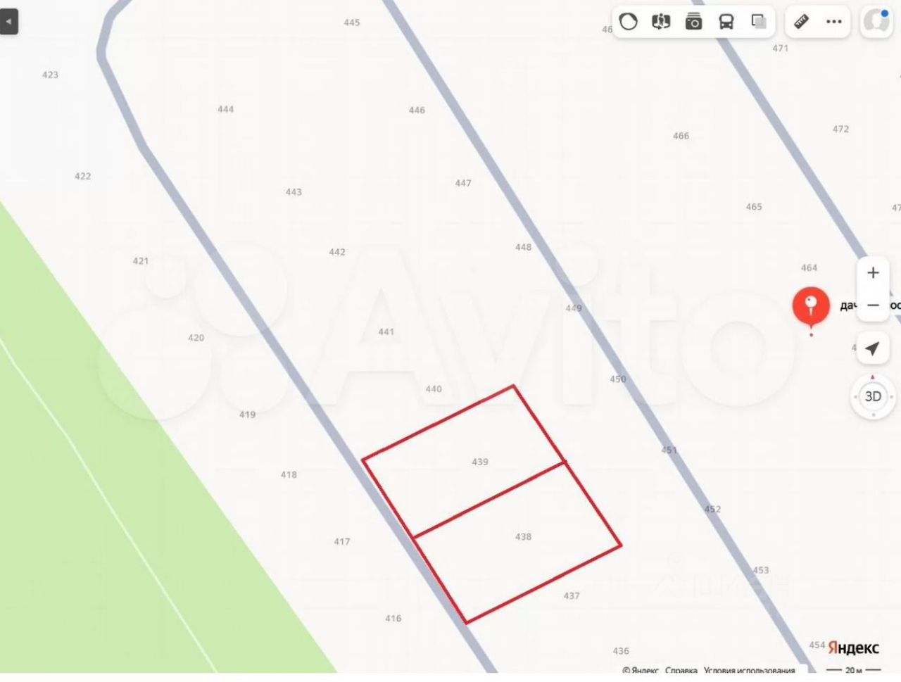 В собственности 2 участка 438, 439 каждый по 12 соток, продаются как отдельно так и одним лотом.