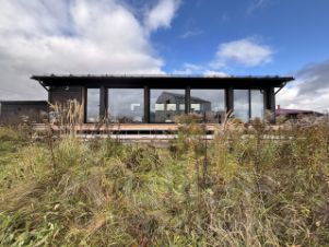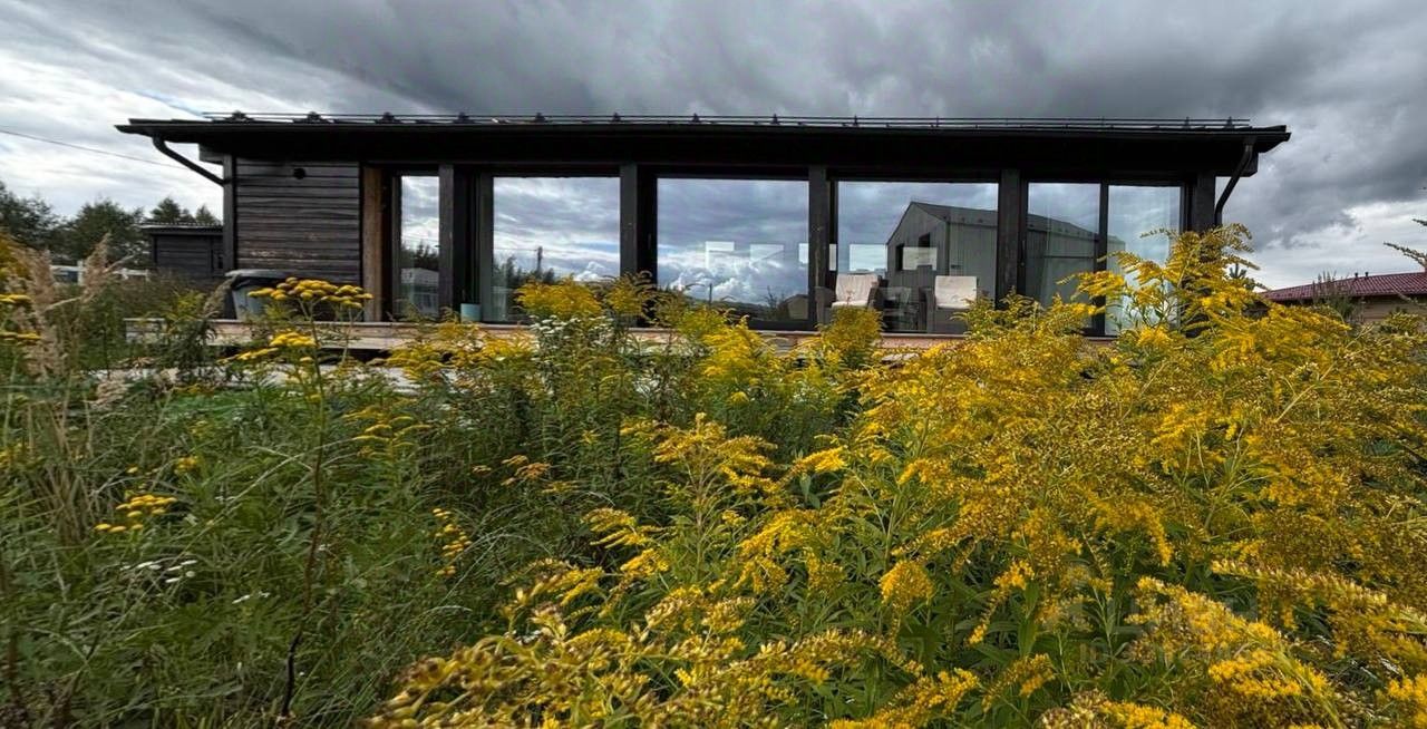 Атмосферный, просторный, уютный, теплый дом с двумя спальнями, гостиной, террасой, большими, в пол раздвижными окнами. Дом качественный, каркасный, фундамент из оцинкованных свай, бетонная стяжка. Эл-во 15 кВт.