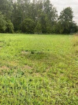 участок расчищен от деревьев, он крайний к лесу соток поэтому больше чем по документам,с небольшим уклоном за забором небольшой овраг и лес в котором летом и осенью ягоды и грибы