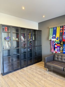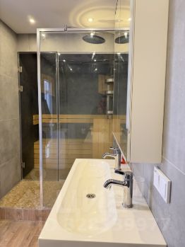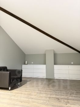 Дом двухэтажный: первый этаж кухня-гостиная с панорамными окнами и выходом на террасу, гостевая комната , кабинет , санузел с сауной и бойлерная . На втором этаже мастер спальня , с огромной гардеробной, две спальни -детские , санузел.