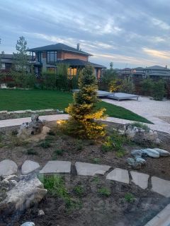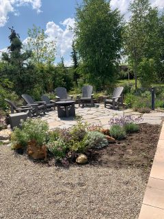 На участке выполнен красивый ландшафтный дизайн , с разделением зон отдыха и огородного досуга .