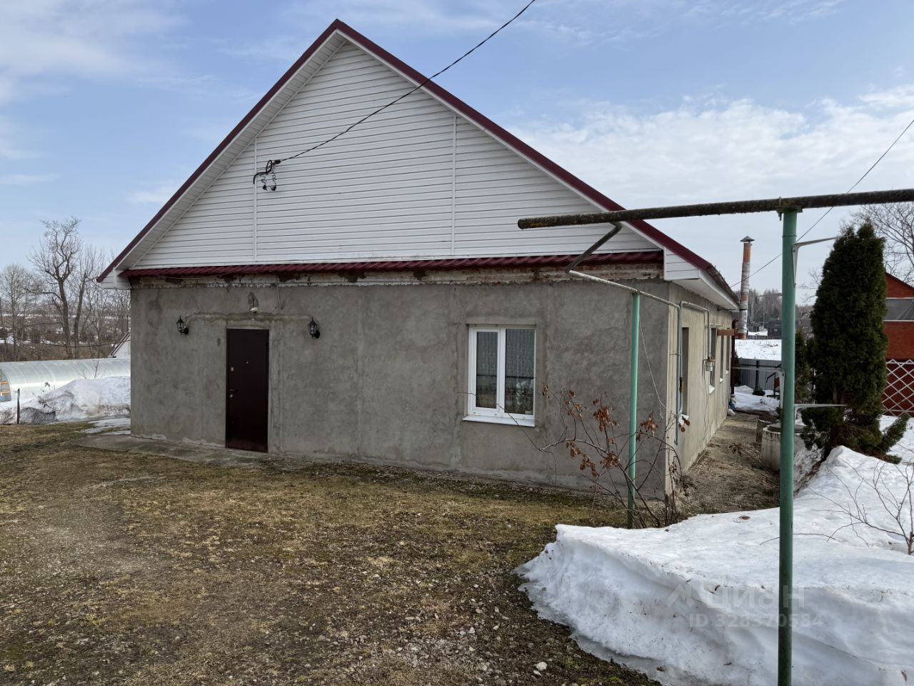 На участке имеется небольшая баня, но с бассейном(!!!), гараж на три машины с техникой, 2-этажная дачка с видом на немаленький пруд для ловли рыбы (в 10м от дома), две теплицы. Много плодово-ягодных насаждений, в том числе виноградная лоза. Также перед домом разбит полисадник: высажены туи, розы.