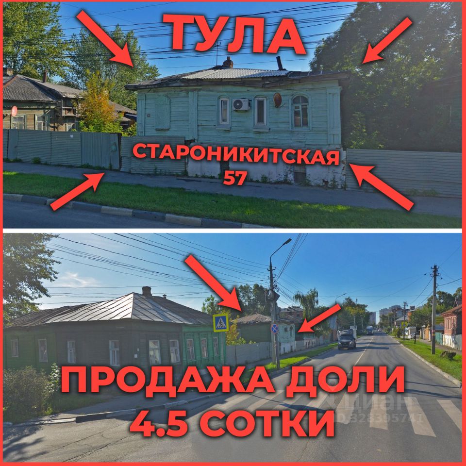Возможна продажа всего участка (9,1 сот.) ищите соседнее объявление по адресу Староникитская 57 (ТУЛА), через риэлтора (этажи).
