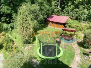 Участок зеленый и большой, много земли для посадок, есть место для отдыха, бассейна и батута.