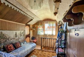 На участке расположен дом, площадью 40 м2. На первом этаже две комнаты и кухня, на мансардном этаже комната для отдыха.