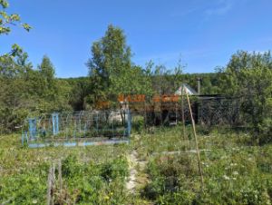 Участок прямоугольный, разработан, огорожен сеткой - рабицей. На участке установлена теплица, имеется хозблок, высажены плодовые деревья и кустарники.