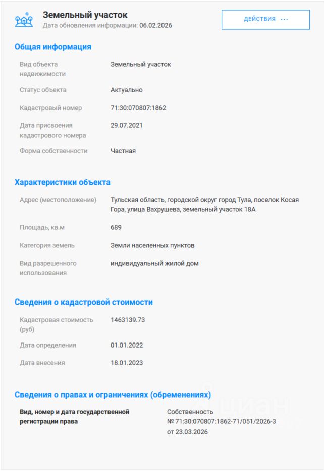 Участок находится в окружении жилых домов с хорошими соседями. Отличный вариант для тех, кто ищет тихое, уютное место для строительства семейного дома, но при этом хочет оставаться в пределах городской инфраструктуры.