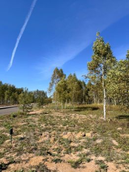 Выбирался лично на месте весной: максимально ровный, с березками, но тонкими, что позволит самостоятельно их выкорчевать при необходимости (в зависимости от планировки дома).