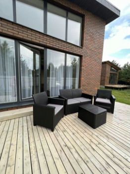 Продается совершенно новый дом в сосновом лесу, подъезд -новая асфальтированная дорога, в шаговой доступности река Ока 300 метров, река Вашана 400 метров, лес 10 метров, имеется мангал, веранда с садовой мебелью.