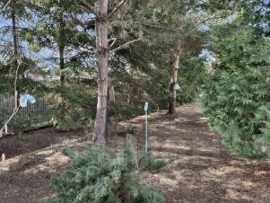 Участок ровный, сухой, с отличным подъездом, очень много сосен и елей- около 20, много туи, яблони, груши, сливы, смородина черная, красная и белая, крыжовник, калина!