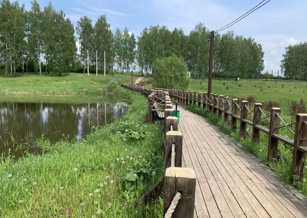 Поселок заселен, действует магазин, собственный пляж, детская площадка, зоны барбекю и отдыха с беседками. Рядом большое озеро с рыбой и щуками.