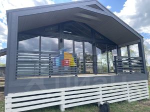 Надежная конструкция: фундамент - бетонные сваи, задний фронтон - металлический сайдинг, лестница - ДПК (прочная и безопасная), каркас обработан огнебиозащитой.