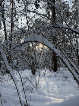 Первая линия у речки, рядом с огромным лесом, на территории нового ТСН, газ по границе, столбы с сетями стоят.