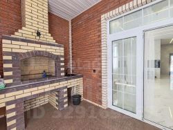 В гостиной есть выход на утепленную веранду, на которой расположена зона барбекю - круглый год есть возможность использовать печь.