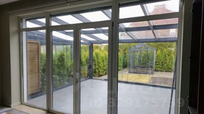 • кухня-гостиная с панорамным остеклением и выходом на участок