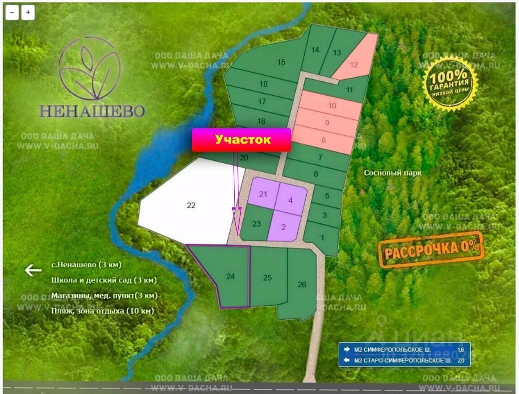 Земельный участок ИЖС 48,57 соток в д. Ненашево Пространство для жизни в окружении природы и комфорта Тульская область, Заокский район, деревня Ненашево Участок 24 Площадь: 48,57 соток Цена: 1 458 000 ₽ Кадастровый номер: 71:09:030301:1242 Предлагается к продаже земельный участок ИЖС в одном из самых привлекательных и экологически благополучных районов Тульской области. Это предложение для тех, кто ценит тишину, природное окружение, удобную транспортную доступность и перспективу комфортной жизни за городом. Участок ровный, сухой, правильной формы, что позволяет без лишних затрат приступить к строительству дома вашей мечты — для сезонного отдыха или постоянного проживания. Пространство участка открывает широкие возможности для индивидуального архитектурного проекта, ландшафтного оформления и создания приватной загородной резиденции. Преимущества, которые делают предложение особенно привлекательным: — категория земли: ИЖС — электричество подведено к участку, 15 кВт, 3 фазы — круглогодичный удобный подъезд — всего 500 метров от асфальтированной дороги — рядом сосновый лес и природный водоем — возможность увеличения площади за счет соседнего свободного участка — перспектива газификации в рамках проекта догазификации — полный комплект документов, быстрый выход на сделку Окружение и инфраструктура Участок расположен в локации, где гармонично сочетаются природная уединенность и развитая инфраструктура. В шаговой доступности находятся школа, детский сад, магазин Пятерочка. В соседнем поселке Заокский представлены торговые центры, кафе, рестораны, строительные магазины, сервисные точки и пункты выдачи заказов. Локация с высоким качеством жизни Ненашево — это место, которое выбирают те, кто стремится к более спокойному и эстетичному образу жизни. Лесные массивы, чистый воздух, тишина, возможность прогулок, сбора грибов и ягод, близость водоемов и зон отдыха создают особую атмосферу загородного комфорта. Всего в 20 минутах езды расположен музей-заповедник Поленово — одна из самых знаковых культурных и природных точек региона. Рядом протекает река Ока с благоустроенными местами для отдыха и купания. Особые условия Сегодня участок предлагается по специальной цене — 1 458 000 ₽ вместо 2 150 000 ₽ Это редкая возможность приобрести участок в перспективной локации по действительно выгодной стоимости. Документы готовы. Сделка возможна в кратчайшие сроки. Если вы ищете место, где можно создать дом с атмосферой уюта, статуса и близости к природе — этот участок достоин вашего внимания.