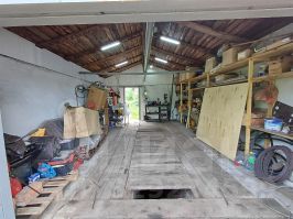 Земельный участок 25 соток: 10 соток огорожены. На участке есть 2 гаража: один гараж 25 м2 с металлическими высокими воротами (газель проезжает) и дверью, второй гараж 31 м2 с металлическими воротами и дверью, есть ремяма и полки. Хозяйственные постройки для хранения инструментов. Есть зимний погреб 5 м2 для хранения закруток и овощей.