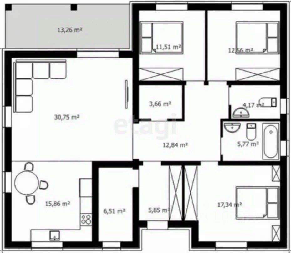 Продается современный одноэтажный дом 2023 года постройки с дизайнерским ремонтом. Площадь дома — 150 м². Пространство включает три комнаты, кухню и просторную гостиную. Дом возведен из газоблоков с наружной отделкой кирпичом и полностью готов к заселению: все коммуникации подведены (газовое отопление, водоснабжение от колодца, септик, Wi-Fi), а мебель внутри и на улице остается новым владельцам.
