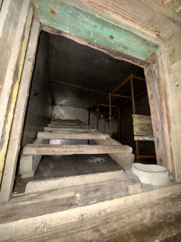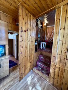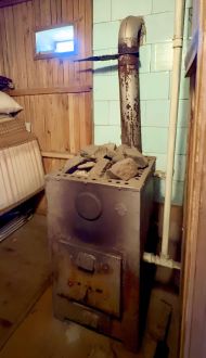 Дом площадью 75 м2 включает три комнаты, кухню и столовую. Одна из комнат утеплена — отопление обеспечивает эффективная русская печь со встроенным камином: она не только согреет в прохладный день, но и создаст особую атмосферу домашнего уюта. В доме выполнен косметический ремонт, санузел расположен на улице.