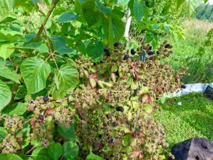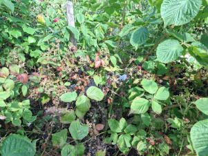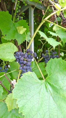 кусты : виноград , смородина, крыжовник.