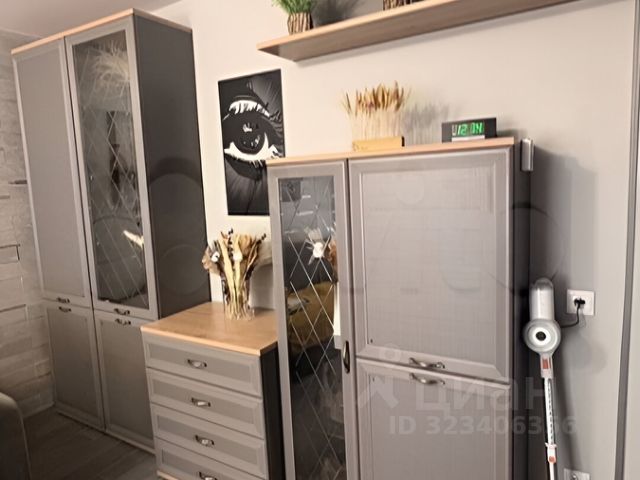 находятся раскладной диван, кресло, торшер, ЖК-телевизор, рабочий стол, сейф, кухонный уголок: чай/кофе станция, электрочайник, раковина, микроволновая печь, двуспальная кровать(1800х2000), прикроватные тумбочки, светил