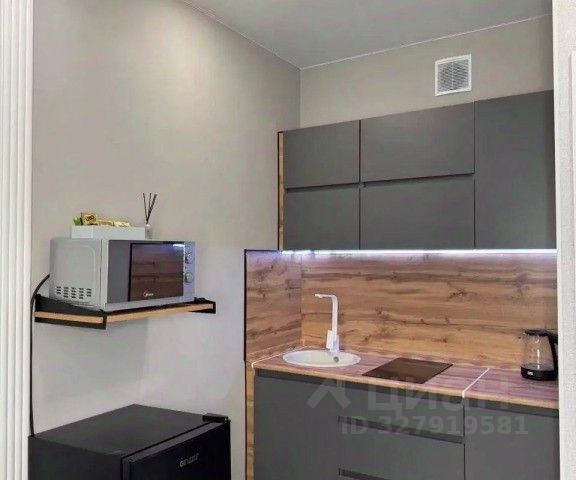 находятся раскладной диван, кресло, торшер, ЖК-телевизор, рабочий стол, сейф, кухонный уголок: чай/кофе станция, электрочайник, раковина, микроволновая печь, двуспальная кровать(1800х2000), прикроватные тумбочки, светил