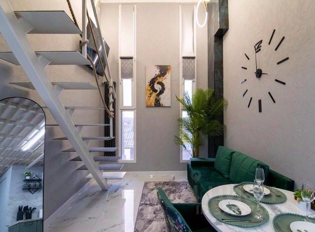 Роскошный просторный номер с балконом, состоящий из зон гостиной, спальни, кухонного уголка и ванной. В номере