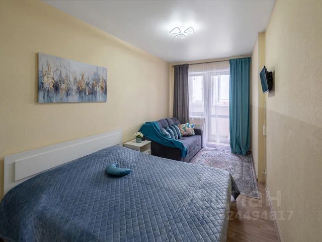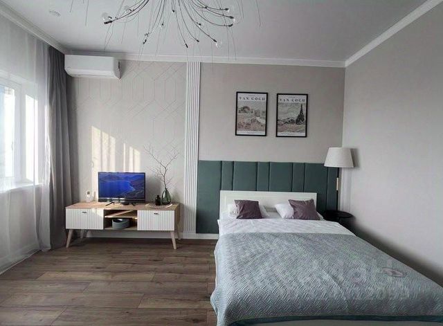 Прекрасная студия со свежим ремонтом в новом доме с чистым подъездом. У самого неба. Размещение до 4-х гостей. Выше всех. 18 этаж весь город как на ладони. Потрясающий закат, линия горизонта на весь вид. Два окна, много света. Плотные шторы, если нужно уединение. Мощный кондиционер, чтобы создать комфортную температуру в помещении. Шикарная двухспальная кровать с мягким изголовьем изумрудного цвета. Матрас шикарный 160 на 200 и высотой 22 см. как в хороших отелях. Идеальное, плотное белое постельное бельё. Страйп-сатин плотностью 140 г/кв. м. В полосочку, как Вам нравится. Без запаха и отлично отглаженное в профессиональной прачечной. Три световые зоны. Оригинальная современная огромная люстра в центре студии, подсветка зоны кухни, подсветка оконной зоны. Для мягкого вечернего света-оригинальный торшер возле кровати. Телевизор в наличии есть. Подключена приставка со СМАРТ ТВ. Оплачен WINK от Ростелекома. Много каналов ТВ и фильмов. Хороший роутер даёт возможность по Вай-фай подключиться к Интернету. В кухонной зоне большая столешница под белый мрамор с круглой мойкой, чайником и встроенной индукционной плитой на 2 конфорки. В шкафчиках найдёте комплект посуды на 3 персоны со столовыми приборами. Кастрюльки и сковорода есть в наличии. И да, штопор и бокалы для вина тоже есть, мы не забыли. Холодильник небольшой стоит рядом, Микроволновая печь есть для разогрева пиццы, когда надо быстро. Положили чай, соль и сахар. Если приедете по работе, есть в сторонке письменный стол с настольной лампой и розеткой. Не придётся работать на обеденном столе. Он тоже есть рядом, чтобы сесть вместе и вечерком отужинать. Для уюта украсили студию постерами Ван Гога. Если запомнить, можно блеснуть знаниями искусства конца начала середины 19 века в компании. Для вещей установили высокий шкаф-купе с зеркалами во весь рост, девушкам будет удобно посмотреть на свою красоту, а мужчинам на девушку. В шкафу много полок и вешалка с плечиками, чтобы не мялась одежда. Если что то помялось, не страшно. Есть неплохой новый утюг с паром и гладильная доска. Всегда можете привести одежду в порядок. Будет нужен пар в утюге, налейте в него воды. Мерный стаканчик будет рядом. В прихожей оставили традиционные крючки для верхней одежды с полкой для головных уборов. Справа от входа поставили оригинальный столик из Икеи на двух колёсиках. Положить сумку или рюкзак после насыщенного дня. Для гигиенических процедур установили небольшую ванну 150 на 80см, расслабиться посидеть в горячей воде. На классную полочку из дерева, можно положить ноутбук или смартфон и смотреть фильмы расслабившись. Вы торопитесь на встречу или нет желания ждать наполнения ванны-примите душ, рядом будет шампунь с кондиционером. Посушить вещи установлен электрический полотенцесушитель. Резервный бойлер в ванной комнате установили на случай отключения горячей воды. Положили новенький фен для сушки всего. Коврик для ног в ванной кладём один. Полотенца для каждого. Стиральная машина порадует наших гостей в