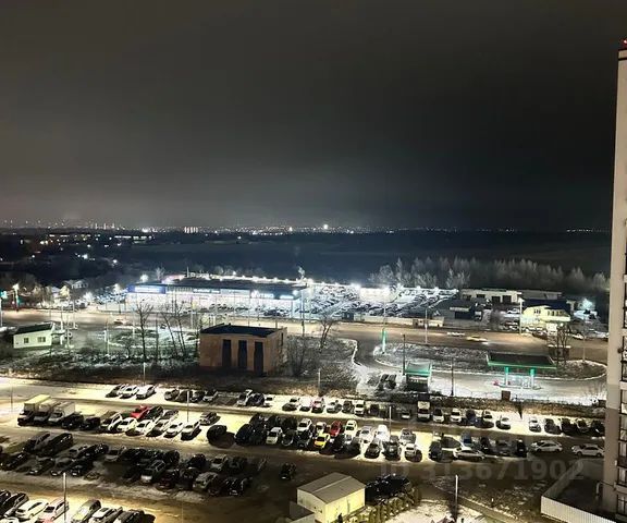 Панорамный балкон с окнами в пол и красивым видом на подсветку двора.
