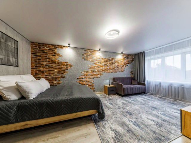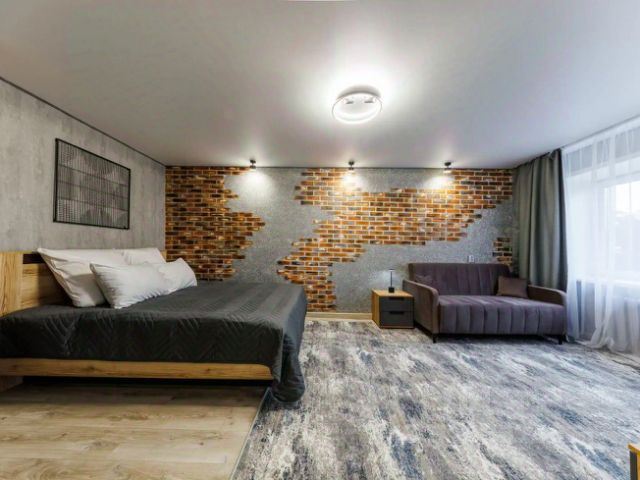 В апартаментах возможно размещение 4 гостей. Спальные места: двуспальная кровать, раскладной диван. Кухня оборудована необходимой посудой и техникой: индукционная варочная панель, микроволновка, чайник, холодильник, посудомоечная машина. К услугам гостей также wi-fi, телевизор, кондиционер, стиральная машина, фен, утюг, гладильная доска, сушилка, постельное белье, полотенца, тульская пресса, тапочки и гигиенические принадлежности.