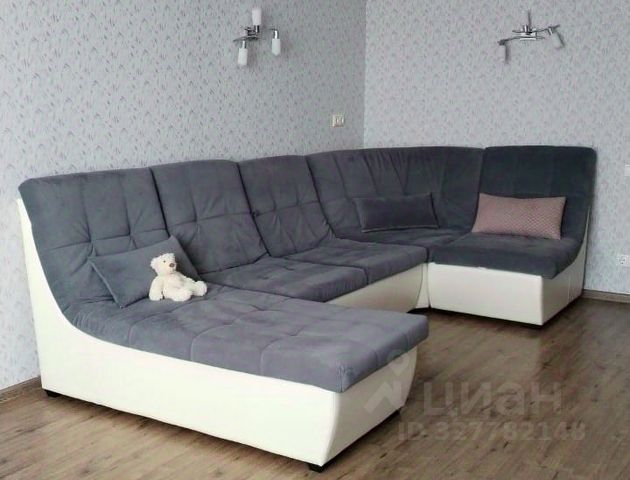 Гостиная (18м2): диван длиной 2 м (раскладывается), журнальный столик, телевизор (40"), уголок для работы, кондиционер.