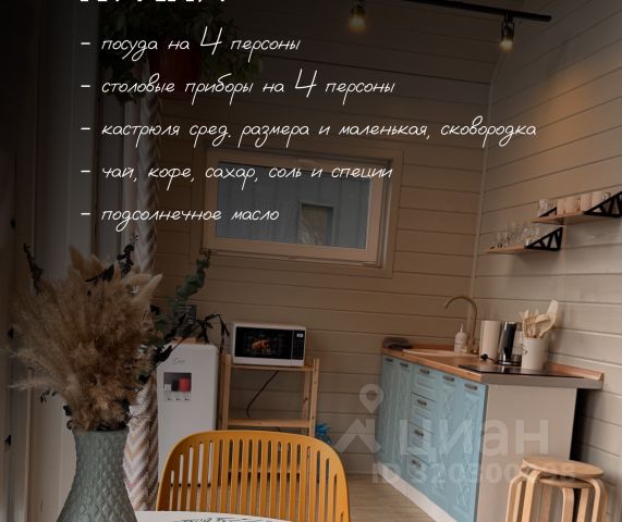 Гель для душа, шампунь, ватные палочки и диски, туалетная бумага, капсулы для стирки, мыло, средство для мытья посуды, капсулы для посудомоечной машины, отпариватель, шампура, дрова, настольные игры, книги, чай, сахар и другие мелочи.
