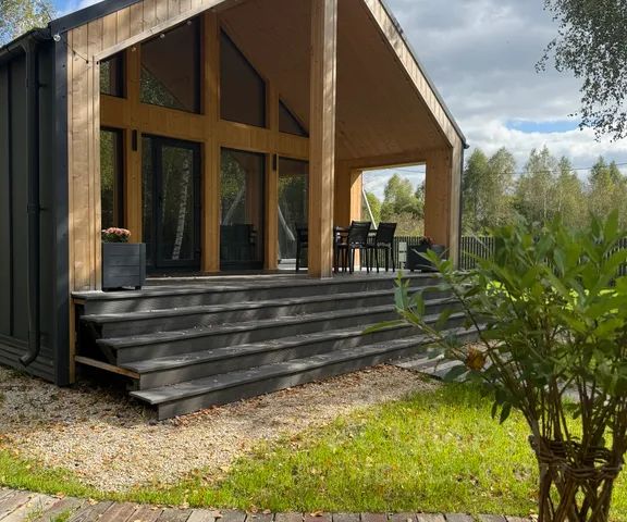 Дopогиe гости! Сдается новый дом с панорамными окнами на окраине леса, с живописной природой вокруг. Здесь вы сможете насладиться тишиной и чистым воздухом! В близи от дома лес где можно прогуляться, пруд в котором можно порыбачить и небольшой магазинчик. В доме полы с подогревом, кондиционер, две спальни с кроватями 180 и 160, кухня-гостиная с раскладным диваном и спальным местом 150, санузел с душевой и средствами личной гигиены, большая терраса с уличным столом и стульями. Имеется все необходимое: постельное бельё, полотенца, фен, резиновые тапочки (для дома или чана), полотенцесушитель электрический, холодильник, микроволновка, чайник, плита, посуда, столовые приборы, кухонные принадлежности, чай, кофе, специи, питьевая вода, два телевизора (один в спальне, второй в гостиной), бесплатный wi-fi. Для развлечения есть бадминтон и настольные игры. На участке 10 соток расположена парковка (территория закрывается), гамак, костровая зона и мангальная зона (шампура и дрова предоставляются). Дополнительная услуга банный чан стоит 7 000 за день пользования, растапливается к вашему приезду, далее оставляется вам для поддержания огня. Так как в наш чан запрещается бросать еловые ветки, цитрусовые и любые другие продукты, к банному чану мы предлагаем "запарку" из полезных трав в мешочке. Стоимость одного мешочка 700 рублей. Заезд с 15: 00 Выезд до 12: 00 Стоимость указана за проживание в домике 4-х гостей! За 5 и 6 гостя доплата за каждого. Максимально дом может вместить 6 человек! Наши гости - молодежь от 23х лет, семьи с детьми любого возраста. На придомовой территории ведется видеонаблюдение для вашей и нашей безопасности. Запрещается: Курение (кальяны и электронные сигареты в том числе) в доме запрещено! Только строго на улице! Разбрасывание бычков, продуктов питания и другого мусора на территории дома! Ограничение по шуму с 22: 00 до 09. 00. Использовать пиротехнику в доме и на участке. Заселение с домашними животными.