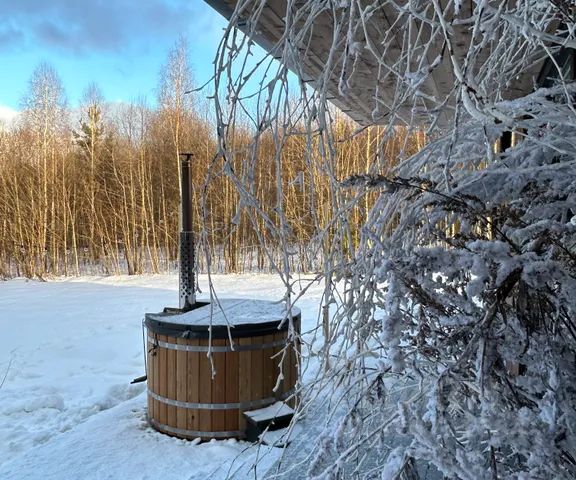 - сибирский банный чан на дровах рядом с террасой.