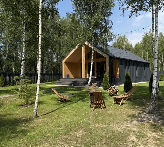 Дopогиe гости! Сдается абсолютно НОВЫЙ дом с панорамными окнами на окраине леса, с живописной природой вокруг. Здесь Вы сможете насладиться тишиной и чистым воздухом! В близи от дома лес где можно прогуляться, пруд в котором можно порыбачить и небольшой магазинчик. В доме полы с подогревом, кондиционер, две спальни с кроватями 180 и 160, кухня-гостиная, санузел с душевой, большая терраса с уличным столом и стульями. Имеется все необходимое: постельное белье, полотенца, фен, предметы гигиены, холодильник, микроволновка, чайник, плита, два телевизора (один в спальне, второй в гостиной), бесплатный Wi-Fi, посуда, столовые приборы, кухонные принадлежности. Для развлечения есть бадминтон и настольные игры. На участке 10 соток расположена парковка (территория закрывается), гамак, костровая зона и мангальная зона (решетка и дрова предоставляются). Заезд с 14:00 Выезд до 12:00 Стоимость указана за проживание в домике 4-х гостей! Максимально дом может вместить 6 человек! Наши гости - молодежь от 23х лет, семьи с детьми любого возраста. Запрещается: Курение (кальяны и электронные сигареты в том числе) в доме запрещено! Только строго на улице! Ограничение по шуму с 22:00 до 09.00. Использовать пиротехнику в доме и на участке. Заселение с домашними животными.