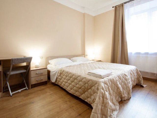 Отель "Новомосковск" расположен в центре Новомосковска, в 10 минутах ходьбы до Городской площади. Рядом находятся архитектурный комплекс "Исток Дона", детский парк имени Д.Г. Оники, Берёзовая роща и сквер "Гостиный дворик". Расстояние до аэропорта Домодедово составляет 191 км, а до железнодорожного и автовокзала вокзала 280 м. Средство размещения находится под единым управлением юридического лица или индивидуального предпринимателя, уполномоченного собственником (ами) или владельцем (ами) средства размещения Количество предоставляемых номеров для бронирования и заселения составляет 110. Площадь однокомнатного одноместного номера не менее 9 м2 Площадь однокомнатного двухместного номера не менее 12 м2 Многоместные номера вместимостью не более 8 человек Площадь многоместного номера не менее 6 м² на человека, либо не менее 4 м² на 1 кровать Кровать односпальная одноярусная 80 x 190 см Кровать двуспальная 160 x 190 см Комплект постельных принадлежностей, полотенец и белья Информация с телефонными номерами средств размещения и экстренных оперативных служб Для бронирования предлагаются номера категорий " Стандарт", "Студия" . Все они оснащены комфортабельной мебелью, Wi-Fi, холодильником, телевизором и собственной ванной комнатой с туалетно-косметическими принадлежностями. В отеле оборудована кухня самообслуживания со всей необходимой техникой и столовая. По желанию, гостям предоставляется завтрак (за отдельную плату). К услугам гостей ежедневно работает бильярдная комната. Однокомнатный номер площадью 12 кв.м., рассчитанный на проживание 1 человека. В номере: односпальная кровать, тумба, журнальный стол, стул, телевизор, холодильник. Полный санузел с душем.