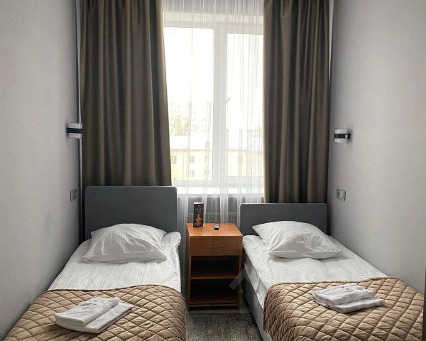 Уютный номер для размещения одного или двух человек. Площадь номера от 14 до 18 м2 В комнате две полутороспальные кровати, рабочая зона, мини-холодильник, телефон, телевизор, шкаф. В ванной комнате: фен, , туалет, бесплатные гигиенические принадлежности: мыло, шампунь, комплект полотенец.