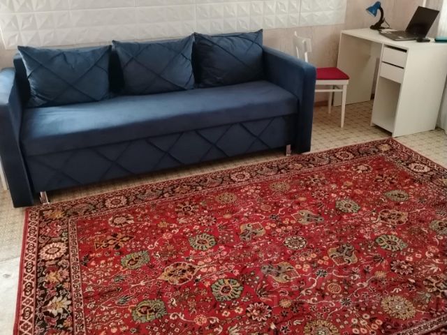 Гостиная (18м2): диван длиной 2 м (раскладывается), журнальный столик, телевизор (40"), уголок для работы, кондиционер.