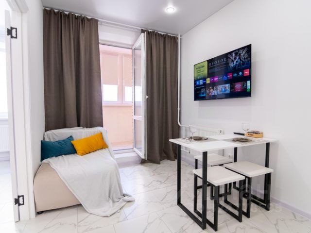В квартире имеется все необходимое для комфортного проживания: кухня с необходимым набором посуды и столовых приборов. Спальные места для 3х гостей: двуспальная кровать, односпальное кресло-кровать, полотенца, чистое постельное белье, LCD TV, скоростной Wi-Fi, утюг, фен, стиральная машина