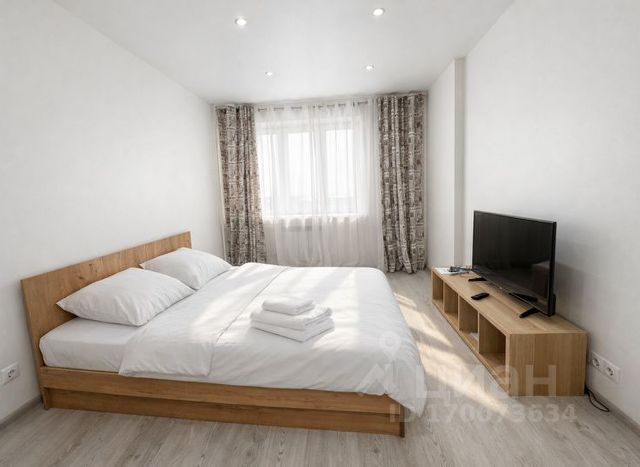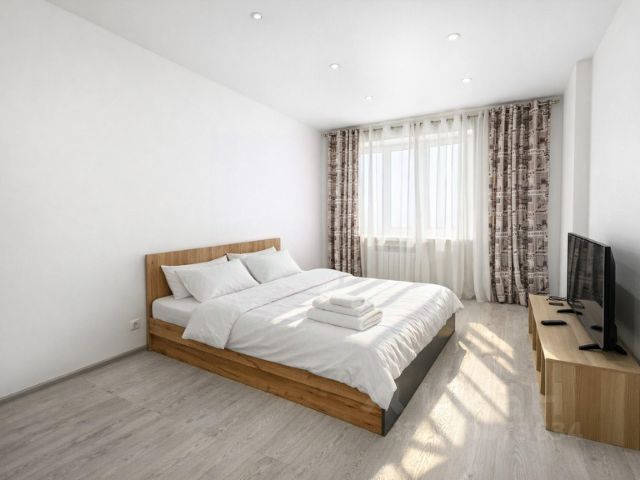 находятся раскладной диван, кресло, торшер, ЖК-телевизор, рабочий стол, сейф, кухонный уголок: чай/кофе станция, электрочайник, раковина, микроволновая печь, двуспальная кровать(1800х2000), прикроватные тумбочки, светил