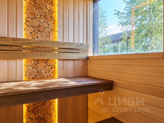 Большая терраса с мягким диваном, панорамная сауна с видом на лес, высокий потолок и минимум лишнего в интерьере — всё для отдыха и перезагрузки. Фото полностью соответствуют реальности.